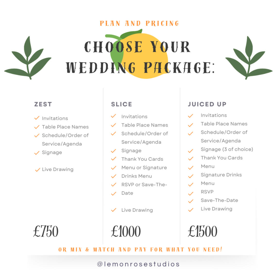 Event Services by Lemon Rose StudiosCurrently offering Live Illustration and bespoke Stationery Services for weddings, graduations, birthdays, baby showers and many other events!We have individual prices listed, or save with a customizable package!Interested?